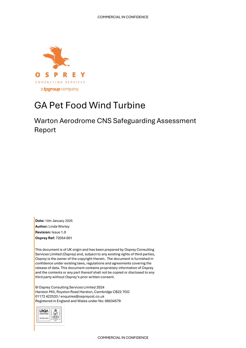 GA Pet Food Wind Turbine – Warton Aerodrome CNS Safeguarding Assessment