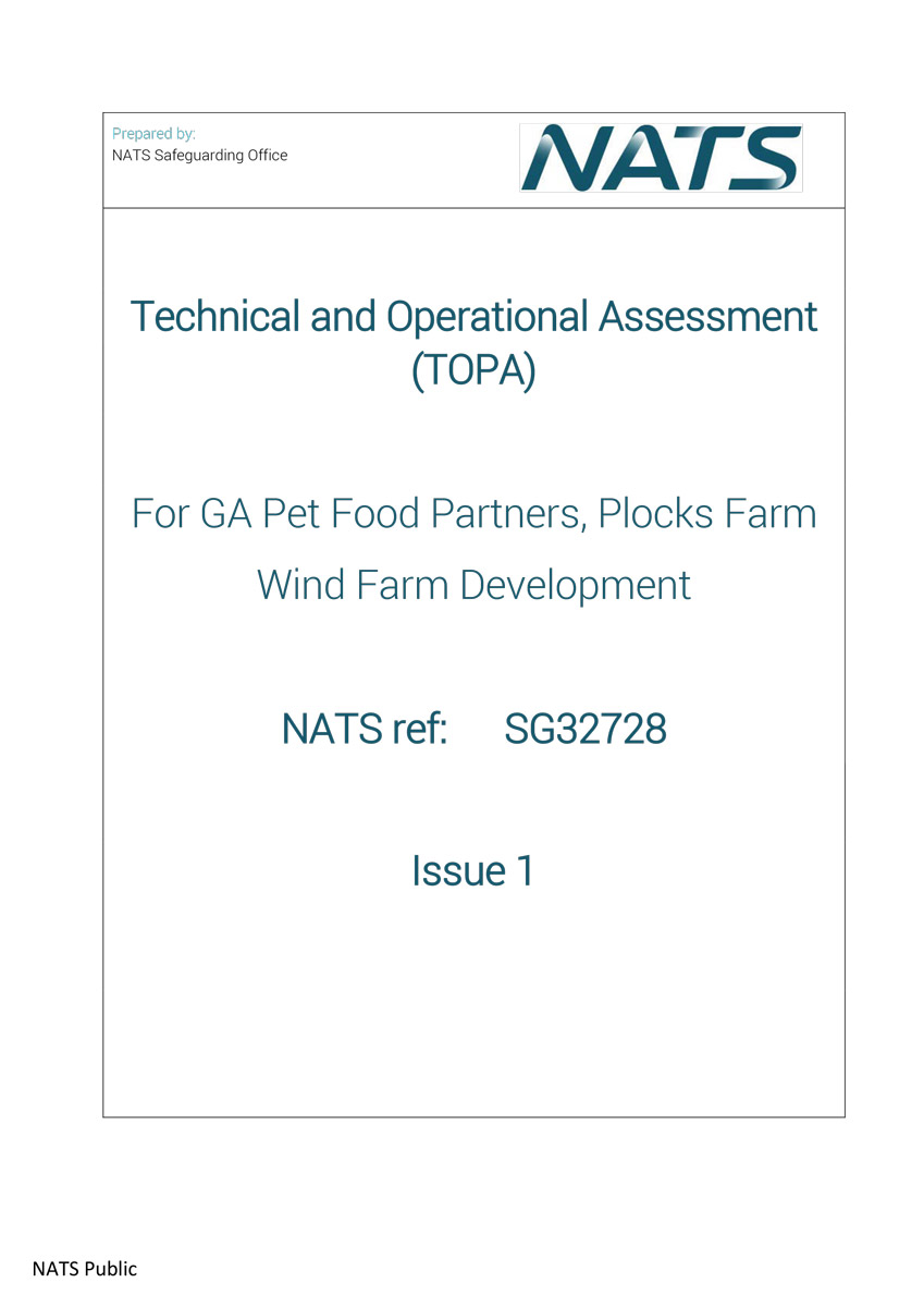 Technical and Operational Assessment (TOPA) – For GA Pet Food Partners, Plocks Farm Wind Farm Development – NATS ref: SG32728 – Issue 1