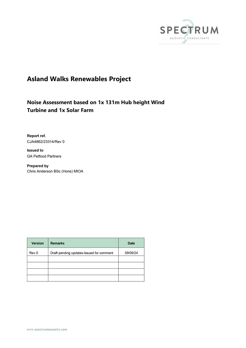 Asland Walks Renewables Project – Noise Assessment based on 1x 131m Hub height Wind Turbine and 1x Solar Farm